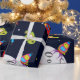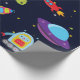 Crazy, happy, colorful assortment of robots amid the planets and stars. Perfect for a child's birthday, or for any occasion, for anyone who loves robots or Sci-Fi or a 50s cartoon feel. The images are quite large, so this is best to use on large packages. Be sure to check what finish you want on the paper under “Options”, “Media”-- this item is currently set for the "matte" finish. There's plenty of room to customize the paper with a name or personal message. Have fun!