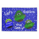One-of-a-kind kids space standard size pillow case sets. Fun navy blue background with lots of stars and the wording, Let's Explore the Galaxy, Blast-Off. Floating in the galaxy is Captain Zacky a green robot alien with his spaceship friends, Green Dragon Spaceship, Dino the Dinosaur Spaceship, and Zippie the Blue Fish Spaceship. Cool space robot theme for kids rooms. Designed for the standard size pillow cases. Original Graphic Artwork Cartoon Characters Design Copyright © 2014 TamiraZDesigns. All Rights Reserved