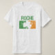 A t-shirt featuring a distressed Irish white, green, and orange shamrock with the surname Roche.