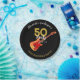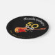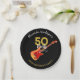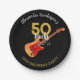 Celebrate him turning fifty in rock and roll style with this cool 50 Rocks personalized 50th birthday party black paper plate. Whether it’s you rockstar husband, boyfriend, dad or friend this cool flame electric guitar with red pick guard illustration, musical notes and gold modern typography script celebrate them in rock n roll style. Easy to use templates so you can add the birthday celebrants name, Ideal for a black and gold color theme. Check out the rock and roll 50th birthday party 50 Rocks collection for matching party supplies. Musicians, guitar players and live music lovers will love this trendy musical theme. Original artwork by artist Catherine Sweetman