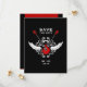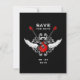 Announce your wedding with this unconventional Save the Date card in rock and roll style with crossed electric red rock guitars, wings and vintage ornaments on black.