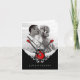 Unconventional wedding Thank You photo note card featuring a rock and roll theme with illustration of electric guitars, wings and elegant baroque vintage ornaments on red, white and black.