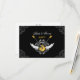 Unconventional RSVP card to be sent with the matching wedding invitation, on yellow and black featuring a rock and roll theme with illustration of electric guitars, wings and elegant baroque vintage ornaments.