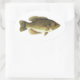 This freshwater fishing sticker features a rock bass icon. Also known as redeye, this member of the sunfish family is smaller and stockier than smallmouth bass. Redeyes and smallmouth bass are often found together in rocky sections of creeks and streams.