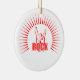 Lightweight, smooth, pure white ornament with nice sheen. Perfect size to be seen from across the room ... and to attract closer inspection! Price was great for ordering enough for the whole family! Clear, bold black design just as requested. Matches the order exactly. Just so nice!