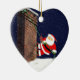 Funny rock climbing Christmas ornament and holiday keepsake gift featuring cartoon Santa scaling a chimney. To personalize edit text to add name.