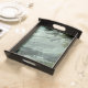 This is a well made, sturdy wooden tray with a flawless black finish and lovely map on the tray surface. It is both vintage & modern at the same time. Looks exactly like the photo; does not disappoint. So nice to find something of quality individually made and not the mass-produced 'shabby chic' merchandise seen in stores. I am so pleased to be able to give this to my college-age niece for her birthday. This can be used as a tray to hold jewelry or toiletries, or hung on the wall as art. The map surface is sealed (it is slightly shiny) so would be moisture resistant. It is well worth the asking price but I was able to apply a sale code as well. Very happy with my purchase. Map is crisp & clear and sealed with a water-resitant finish.