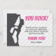Say thank you with these bold rock climbing cards. These are perfect for your daughter's rock climbing party featuring a girl climbing a rock wall with pink and dark gray text.