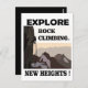 Explore New Heights Rock Climbing Postcard designed by Nisha Prabhu. Reach new heights with this adventurous rock climbing postcard! Featuring a stunning mountainous backdrop and a bold, eye-catching design, this postcard is perfect for sending to fellow climbers or for decorating your space. Whether you're an experienced climber or just starting out, this postcard is sure to inspire you to push yourself to new limits. So grab your gear and get ready to conquer the next peak with this exciting rock climbing postcard!