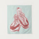 An illustration in red and pink of a retro vintage pier of rock climbing shoes. Boot style shoes. The design is to promote resoling and reranding of climbing shoes rather than replacing them. For climbers who love to get the most out of their climbing gear rather than constantly buying new things for trad sport or gym climbing.