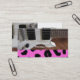 A cool business card featuring a white electric guitar with a bold leopard print pattern background. Customize with all of your information as desired.
