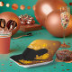 A rock guitarist playing the guitar set against a background. This design looks really effective on these Paper Plates