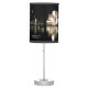 I have purchased other similar lamps. I use them as extra light for guest's. They are inexpensive, easy to assemble and good height for reading. I like that there are many pre-made shades to choose from and that, like this one, you can use your own art.