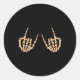Rock On Halloween Checkered Pattern Skeleton Hand Classic Round Sticker