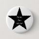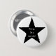 A cute plain and simple raggedy edged black star on a pin on button. The wording in the center says "Kiss me, I'm a rock star!" for fun and flirts.