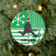This cool Christmas ornament makes the perfect gift or stocking stuffer for the rock star in your life! Design features a green background with white snowflakes, stripes and argyle pattern. In the center is a black silhouette of a rock star jumping in the air playing the guitar. The rocking rock star silhouette has a red Santa Claus hat on his head. Below this Santa hat wearing, guitar playing rock star is text in black font for your to add a name to personalize this ornament for yourself or as a gift for someone else! Children and adult rock stars will both love this ornament on their Christmas tree!