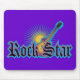 "Rock Star" text designed in black, purple and blue with with guitar and sunburst.