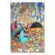 This is a drawing of a lady depicted as a mermaid. She is wearing an elaborate flower crown as an accessory and she is sitting on a magical giant cornucopia, which she owns and uses to produce goods (foods most especially) for the hungry. Despite her glamorous looks, she is known to be kind and charitable to the less fortunate.