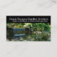 A beautiful color photograph featuring a backyard man made waterfall and small pond water feature. Surrounded in round boulders and jagged rocks, and planted on both sides with green plants and ground covers, you can almost hear the water as it pours off the top ledge and trickles downstream. Customize both sides with your gardening related business contact information.