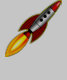 A retro 1940/50s style rocket blasts it's way into orbit, or maybe to the Moon or Mars.