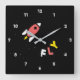 Retro, pop, colorful creation of a Rocket, Square Clock.