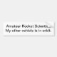 Bumper sticker with the statement "Amateur Rocket Scientist: My other vehicle is in orbit."