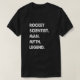My 11 yo wore adult XL (5’7” 165#). The 8yo is small framed. She wore adult small and tied it in the back. Grandma wore adult large with long sleeve shirt underneath. Tall girl adult medium. Dark haired male adult large. Good quality dark Heather gray, Gildan brand shirt. -it was next up from basic choice and cost about $20 per shirt. Not too thick or thin. Washed and dried well, no major shrinkage. Not see-through. Can wear a bra under it fine. Screen print is just as shown and well done, front and back.