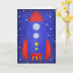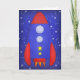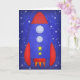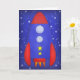 A blue and red rocket ship soars through space, in this young space lovers design!
