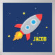 Personalize this wall decor poster with this rocket ship blasting off into a galaxy of stars across the dark blue background. Perfect for the little astronaut as he wanders off into a space adventure in his bedroom!
