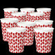 Whimsical red rocket ship birthday party design features WindyDesign's hand-drawn artwork. A fleet of bright red rocket ships on white cups.
