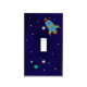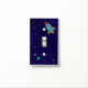 This Rocket Ship Light Switch Cover features a rocket ship flying through outer space dotted with stars and the earth and moon. Great for the little boy or girl who loves rockets, space, and astronauts. A nice touch to add to children's bedroom decor.