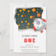 Rocket Ship Orange Planets First Birthday Invitat Invitation