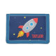 A cute wallet for little astronauts who are up for a space adventure exploring the galaxy of planets and stars! This colourful and attractive wallet comes with a cute rocket ship blasting off into space. Personalise with child's name. Great birthday or Christmas gift for kids, especially boys who love space themes.
