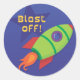 Blast off! Your child's friends will love this unisex rocket ship sticker! Seal your envelopes or hand them out as party favors.