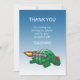 The Speedy Rocket Turtle on a Birthday Thank You Card for kids.
