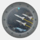 Rockets though Spaceship Porthole Classic Round Sticker
