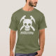 My 11 yo wore adult XL (5’7” 165#). The 8yo is small framed. She wore adult small and tied it in the back. Grandma wore adult large with long sleeve shirt underneath. Tall girl adult medium. Dark haired male adult large. Good quality dark Heather gray, Gildan brand shirt. -it was next up from basic choice and cost about $20 per shirt. Not too thick or thin. Washed and dried well, no major shrinkage. Not see-through. Can wear a bra under it fine. Screen print is just as shown and well done, front and back.