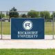 Showcase your connection to Kansas City's Jesuit University with this distinguished and official Rockhurst University design! The artwork features the sophisticated "R" monogram enclosed within a classic circular border on the left, perfectly balanced by the university's name in elegant, bold blue serif typography. This refined layout embodies the academic excellence and tradition of the school, making it an essential choice for alumni, students, and faculty who want to display their pride with class.