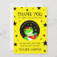Thank guests for attending his first birthdays with this whimsical thank you card, which features a cute tree frog with flaming red spiked hair and rocking a red guitar on a starry black background!