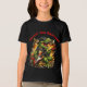 T-Rex Dinosaur playing an electric guitar. This fierce green Tyrannosaurus Rex is shredding an electric guitar amid flames and lightning. This fun, bold illustration blends heavy metal attitude, rock music energy, and dinosaur fandom into one unforgettable illustration.