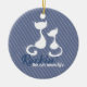 Trendy blue stripe ornament with a cute cat silhouette, a perfect gift for the cat lover in your life. Be sure to personalize the back side with the name of your favorite cat mom!