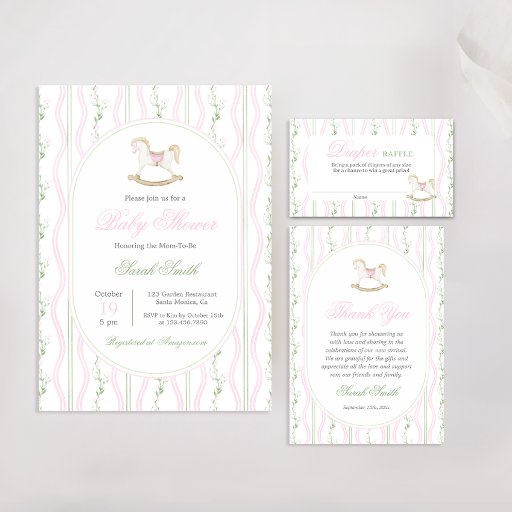 Rocking Horse Diaper Raffle Card, Baby Shower Girl