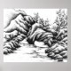 A landscape is often painted in three tones or shades of ink. Various shades can be made by diluting the black ink with water.