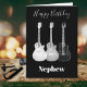 Whether your nephew is a guitarist with exceptional skill or an air guitarist this is the card for him. Cool black and white monochromatic illustrations of three semi acoustic guitars in slightly translucent off white, grey and black hues. The words ‘happy birthday nephew’ can be customised using the template to create a personalized card for your music loving nephew on his special Day. Original artwork created by artist Catherine Sweetman
