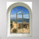 Sea view, faux curved window beach scene, for a windowless office. Very realistic landscape optical illusion poster that would look great on an office or study wall.