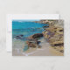 This beach design features a rocky shoreline. The picturesque setting combines greenery, blue ocean, rocky coastline and golden sand. The wording is elegantly framed with a simple white opaque border background. This is the perfect beach destination wedding design ideal for a summer or seaside wedding. Elegant and romantic beach wedding RSVP acceptance card design with modern elements. Matching wedding invitations and other stationery items are also available.