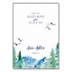 This Rocky Mountain destination guest name place card is perfect for an outdoor wedding reception. The design features a blue and green painted wilderness landscape with watercolor pine trees, birds and mountains. Personalize the back of the place cards with the names of the bride and groom and the date. Personalize each place card and add each card to your cart individually. Alternatively, leave the template sections blank (DELETE "Guest Name" and "Table 3"), purchase in bulk and hand write the information on the printed card when they arrive. Important Note: these cards arrive flat. You will need to score and fold them.