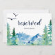 This Rocky Mountain destination wedding reserved sign is perfect for an outdoor wedding. The card is double sided (prints on both sides). The design features a blue and green painted wilderness landscape with watercolor pine trees, birds and mountains. Use these cards to reserve chairs or tables at your wedding ceremony, reception or any event.