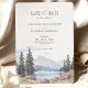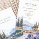 Set the tone for your mountainous union with this 'Rocky Mountain Idyll' Save-the-Date invitation, which paints a scene as serene and majestic as the love you share. The foreground features stately pine trees in rich evergreen, while the tranquil lake reflects the grandeur of the distant Rockies, depicted in subtle shades of lavender, sky blue, and slate grey. The warm copper and deep charcoal of the lettering beautifully contrast the cool, natural palette of the landscape, inviting your guests to a wedding surrounded by the awe-inspiring beauty of Stanley, Idaho. This invitation is a perfect prelude to a wedding that promises breathtaking views and an atmosphere of rustic elegance.