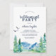This Rocky Mountain retirement party invitation is perfect for an outdoor event. The design features a blue and green painted wilderness landscape with watercolor pine trees, birds and mountains.